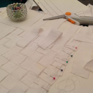 It’s time to get ready for the wedding season so I’m trying something new.  By weaving torn strips from an antique damask tablecloth light catches the shiny patterns in the fabric.  If all goes to plan this cloth will make a range of nostalgic heirloom books.  There may even be enough left over to make a card or two.