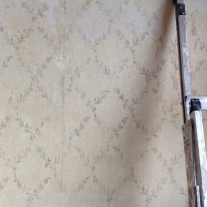 So… while stripping walls I uncovered this trellis imprint beneath painted woodchip. It’s all that’s left of a once pretty Victorian wallpaper. It may even inspire me for a vintage wedding cloth.