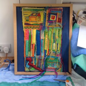 I don’t think so!!!  Rather than throw away my younger daughter’s unwanted textiles piece I took it apart and am using a section as part of a New Home picture for when she moves into her first house.  It’s soon, so I’d better get a ‘ move’ on!