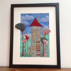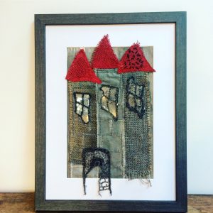 I’m a great fan of anything eerily atmospheric so this is my take on Mary King’s Close in Edinburgh. Made from layers of dyed torn calico, hessian and scrim, this New Home picture was a design sample for a large wall hanging inspired by one of my favourite cities.