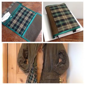 Never one for discarding anything lightly I couldn’t send this well-worn wax jacket to the bin without salvaging some of it first. I cut out the best bits to make this diary cover. Best of all, there are lots of leftovers to use in other projects giving the fabric a new lease of life.