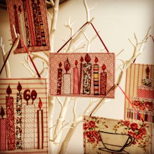 By sewing onto card and adding a ribbon these little pictures can double up as a card as well as a gift to hang up and treasure.