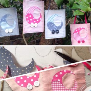 Miniature textile pieces are sewn onto card for you to write your own special message. Can be simply hung up, or framed, as a little gift to keep on display.