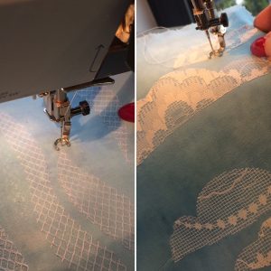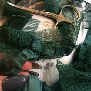 What better way to spend a rainy afternoon than to pick apart the layers of a vintage multi-tiered skirt that found its way into my stash box in readiness for a new use.  The various textured fabrics are just right to use as the grassy background as well as diverse appliqué trees for my latest Windsor Castle wallhangings.