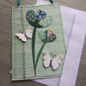 Mother’s Day, although this type of design suits many occasions. It’s good for birthdays, thinking of you, get well, with sympathy: the list is endless. I did a bit of a cheat with this one, though. I was asked for a card with butterflies but as I didn’t have one I adapted this one with a couple of pre-made butterflies found on my pin-board and glued them on. Job done and the customer was happy!!
