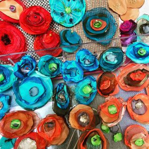 I was delighted to be asked to make a picture for someone who wanted to give a special gift to a special friend. The design brief was simple: a profusion of orange and purple flowers with some flyaway dandelions. Other than that I was given a free reign….