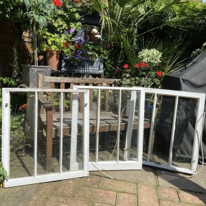 Victorian sash cord windows rescued from next door’s front garden (with their permission, of course!). With a little TLC and some tentative ideas they will be repurposed for a new life. A triple triptych, perhaps?