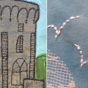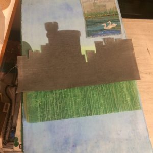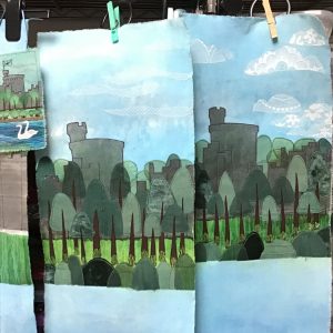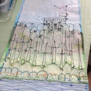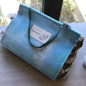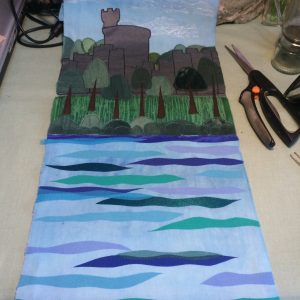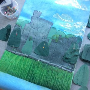 a potential sale. It’s all well and good designing and creating this Windsor Castle wallhanging but working out how to wrap it ready to go to its new home is also important. I think the best way is to lay it flat, face side up, place a roll of scrunched paper on top, bring the ends up and secure with paper clips. Last of all pop it into a paper carrier.