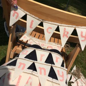Rather than place names, I made personalised bunting to hang on the back of each guest’s chair. It also doubles up as a little memento for everyone to take home.